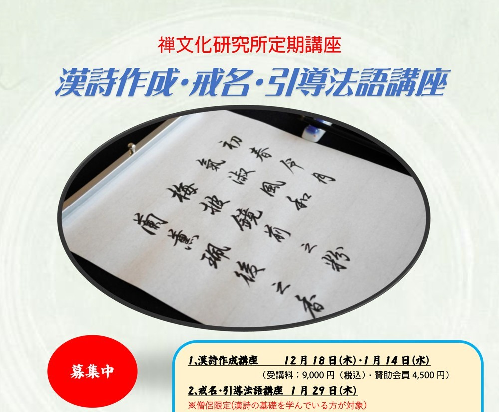漢詩・戒名・引導法語講座のお知らせ