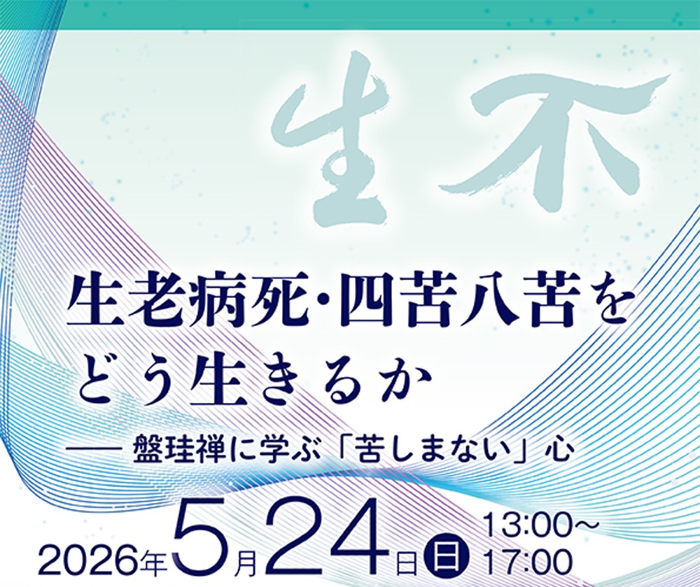 生老病死・四苦八苦をどう生きるか――盤珪禅に学ぶ「苦しまない」心「仏心(ぶっしん)は不生(ふしょう)にして一切事(いっさいじ)が整いますわいの。」人が生きるかぎり、避けることのできない「悩み」や「苦しみ」。私たちはそれに直面したとき、出来事や感情をどう受けとめればよいのでしょうか――。その手がかりが、江戸時代の禅僧・盤珪永琢禅師(1622–93)が説かれた「不生」の教えにあります。盤珪禅の視点から苦悩との関わり方を見つめ直し、人生をよりよく生きるヒントに出会いましょう。●日時2026年5月24日(日) 13:00~17:00●会場円覚寺(大方丈)〒247-0062 鎌倉市山ノ内409《タイムスケジュール》13:00 開会1 .基調講演 盤珪禅師の「不生禅」横田南嶺老師(禅文化研究所所長・円覚寺派管長)2.講演Ⅰ 不生の教え‒‒私の生き方松山照紀師(臨済宗不徹寺住職・庵主)3.講演Ⅱ あるがままに生きる~吃音との葛藤を振り返って~松竹寛山老師(禅文化研究所理事長・平林僧堂師家)4.鼎談 盤珪禅に学ぶ「苦しまない」心5.質疑応答17:00頃 閉会 主催:禅文化研究所 協力:花園大学国際禅学研究所・臨済会・東京禅センター●定員定員:100名●参加費参加費:一般 10,000円 割引 禅文化研究所賛助会員および学生〔いずれもご本人のみ〕 7,000円◆お申し込み後、案内書をお送りします。◆申し込み者のご都合によるキャンセルの場合は返金はいたしかねます。◆申し込み人数により開講不可能となったり、開講中止となる場合がありますが、あらかじめご了承ください。また、その場合には返金させていただきます。●申込方法ホームページよりオンライン申込お申し込みは→こちら