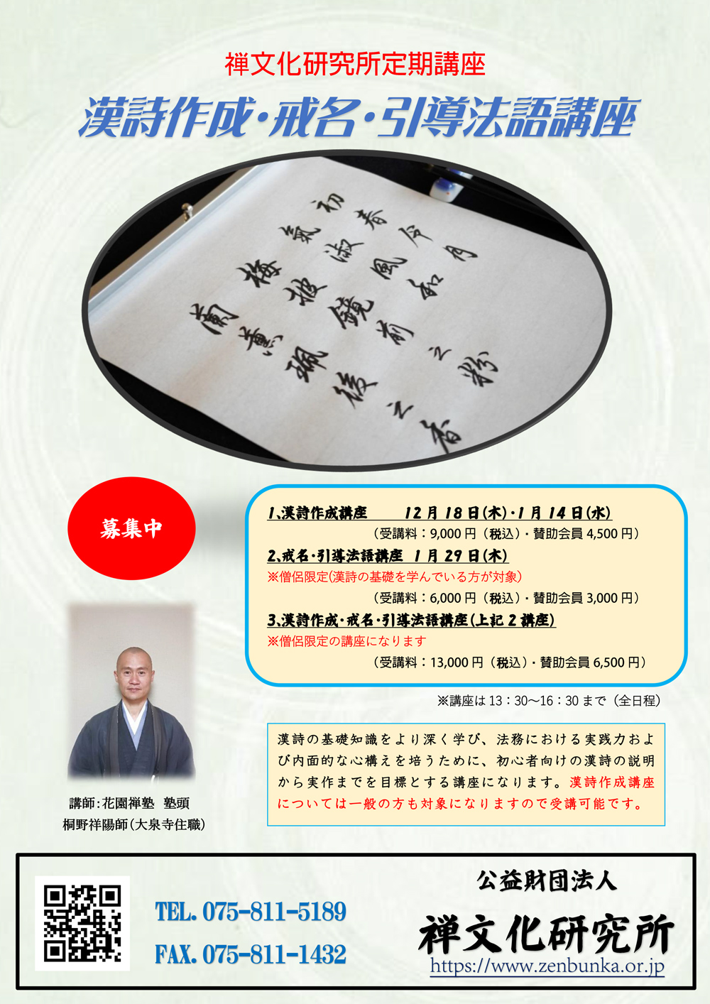 漢詩・戒名・引導法語講座 ※僧侶限定