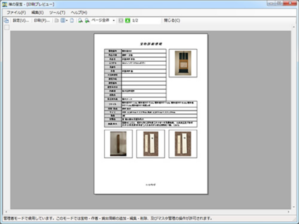 宝物什物の貸出の記録が登録できます。