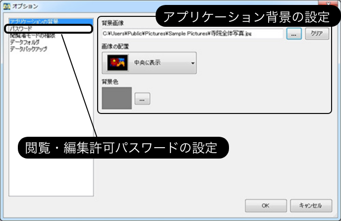 背景・パスワードの設定が可能