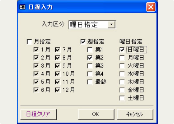 お参りや毎歳行事の既定月日の設定が、例えば、「3月の第1週の土曜日」や「秋分の日の2日後」というような設定も可能となります。