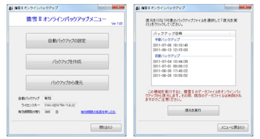 擔雪Ⅱオンラインバックアップで「バックアップサーバーの接続に失敗しました。」というエラーが発生する場合は、最新版のアップデートを実行していただくことで改善します。