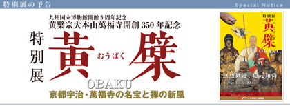黄檗 OBAKU 京都宇治・萬福寺の名宝と禅の新風 -九州国立博物館- 美術館・博物館 X Facebook はてブ Pocket LINE 2011.03.022024.06.10 太宰府にあります九州国立博物館にて、萬福寺開創350年の記念展としまして、『黄檗 OBAKU 京都宇治・萬福寺の名宝と禅の新風』が開催されます(3/15~5/22)。 今回、初めて萬福寺を離れ、公開される彫像2霆もあるとの事。 禅宗の中でも、臨済宗とも曹洞宗ともまた違う雰囲気を味わっていただけたらと思います。期間中、九州の旅をお考えの方、お近くの方は是非お運び下さい。
