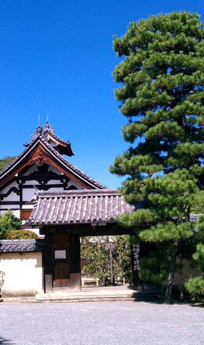 上の写真は、京都市北区の等持院(臨済宗天龍寺派)です。このごろ、研究所ですすめている事業に関わる仕事で京都市内の臨済宗・黄檗宗寺院を駆け巡っているのですが、先日訪ねた等持院にてスマートフォンで撮影したものです。真っ青な空が見事でしょう。