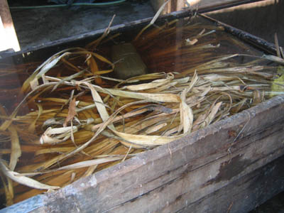 やわらかくふやかす為、大きな釜で煮ているところ。