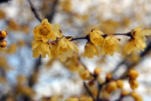 研究所に持ってきた蝋梅や梅の枝はだいぶ前から咲き誇っていますが、自坊の庭ではやっと満開で、とてもいい香りを漂わせています。梅もやっとチラホラと花を咲かせ始めたばかりです。