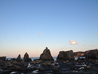 和歌山らしく、弘法さんの伝説が残っており、沖合の島まで一晩で橋をかける事ができるかどうかの賭けを天の邪鬼が挑み、負けそうになった為、鶏の鳴き声を真似て、弘法大師に朝が来たと勘違いさせて作業をやめさせた・・・その名残がこの橋杭岩だそうな。