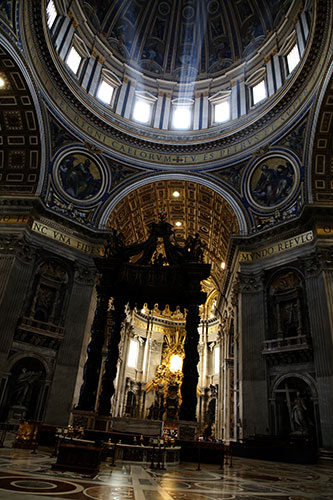 キリストが磔にされたあとの聖母マリアとの像なので、哀しみの表情の聖母マリアなのですが美しいことこの上ないのです。そして改めて大聖堂内部の正面を観て、息を呑みました。この荘厳さ。天井から差込む光が、えも言われぬ神々しさを醸し出しているのです。引き込まれるように祭壇近くまで足を運んだのでした。