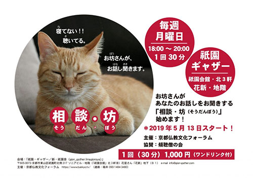 また、福井さんは別途、このギャザーを使って、毎週月曜の夜にお坊さん傾聴バー「相談・坊」ということも先月から始められました。