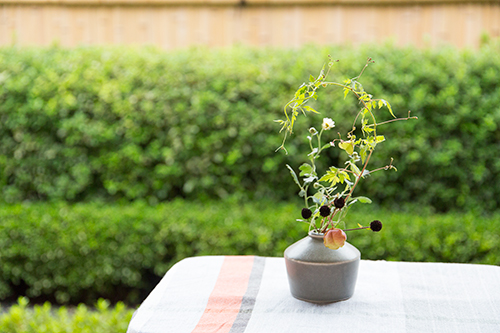 午前中は、妙心寺塔頭の東林院ご住職、西川玄房師に毎年お願いして開催している精進料理講座。そして午後も同じく東林院でお部屋をお借りして、毎年人気の雨宮ゆか先生の「日々の花」講座を開催しました。